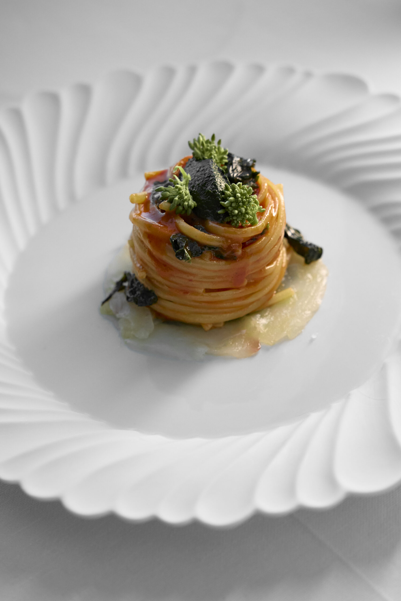 Linguina con ragù di scorfano, broccolo friariello e marinara di